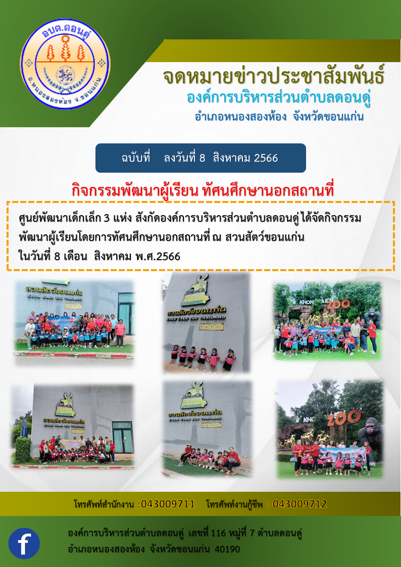 กิจกรรมพัฒนาผู้เรียน ทัศนศึกษานอกสถานที่ [วันที่ 2023-08-09][ผู้อ่าน 82]