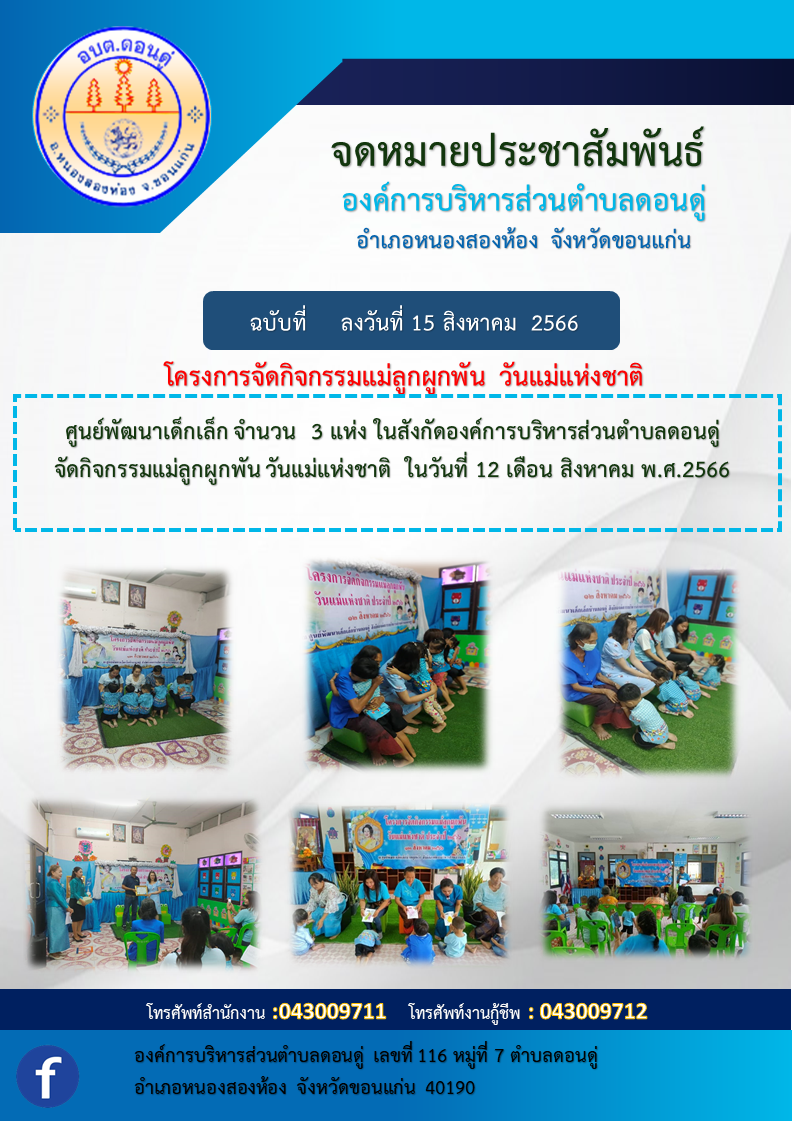 กิจกรรมแม่ลูกผูกพัน วันแม่แห่งชาติ ในวันที่ 12 เด...[วันที่ 2023-08-15][ผู้อ่าน 94]