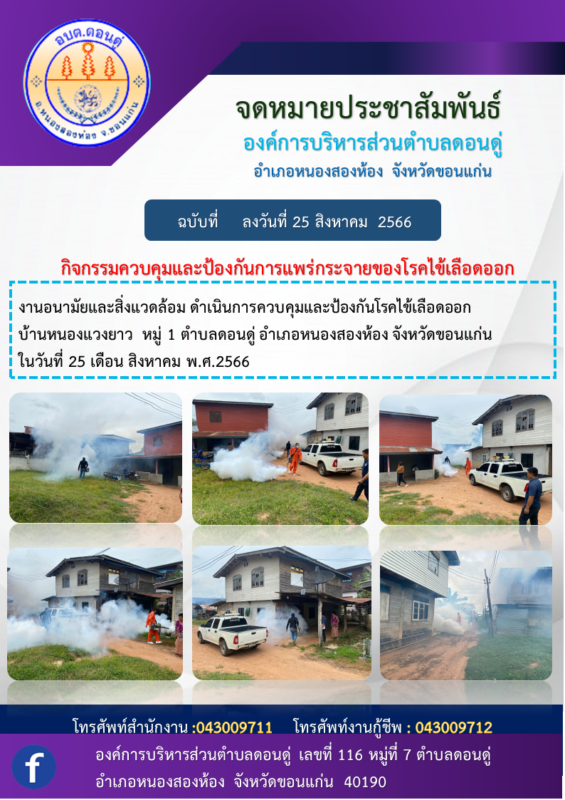 งานอนามัยและสิ่งแวดล้อม ดำเนินการควบคุมและป้องกันโ...[วันที่ 2023-08-25][ผู้อ่าน 128]