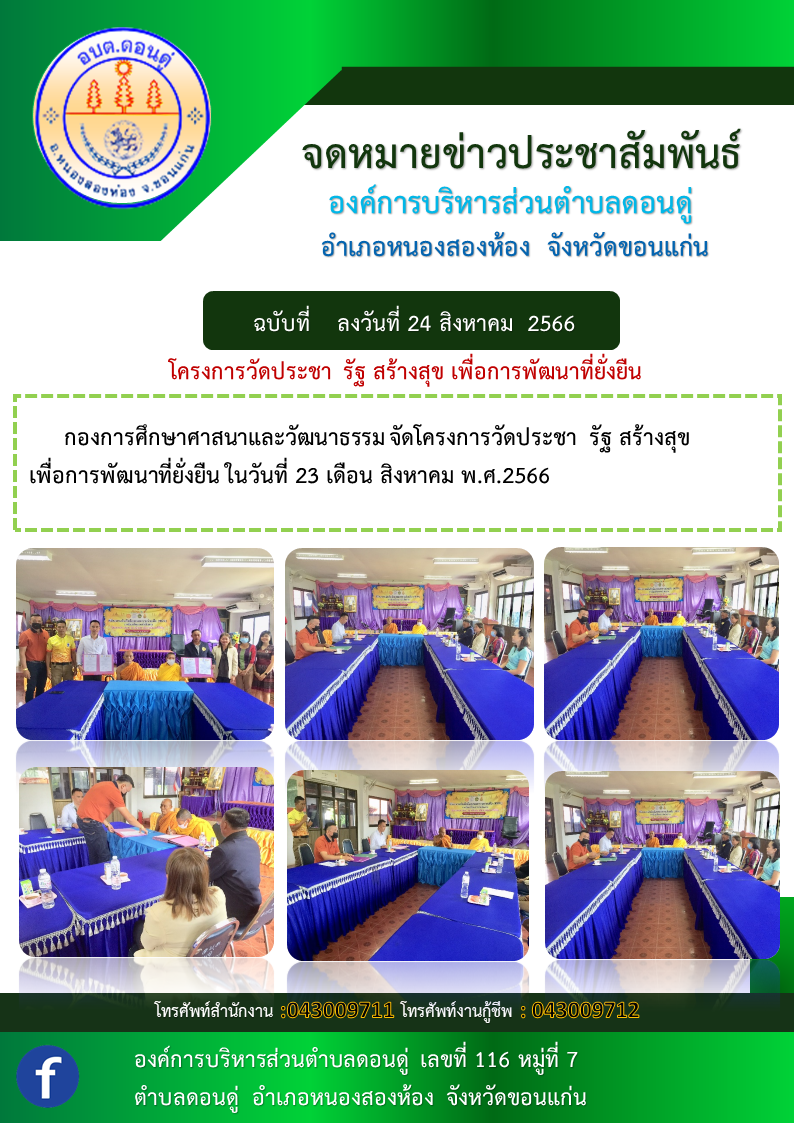 กองการศึกษาศาสนาและวัฒนาธรรม โครงการวัดประชา รัฐ...[วันที่ 2023-08-24][ผู้อ่าน 104]