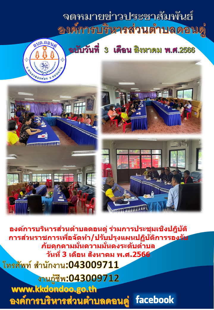 องค์การบริหารส่วนตำบลดอนดู่ ร่วมการประชุมเชิงปฎิบั...[วันที่ 2023-08-04][ผู้อ่าน 58]
