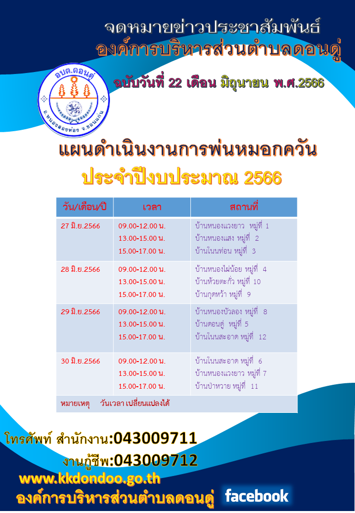 แผนดำเนินงานการพ่นหมอกควัน ประจำปี 2566[วันที่ 2023-06-22][ผู้อ่าน 82]