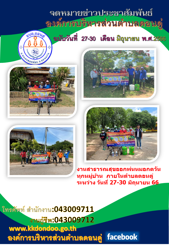 องค์การบริหารส่วนตำบลดอนดู่ อำเภอหนองสองห้อง จังหวัดขอนแก่น : www.kkdondoo.go.th