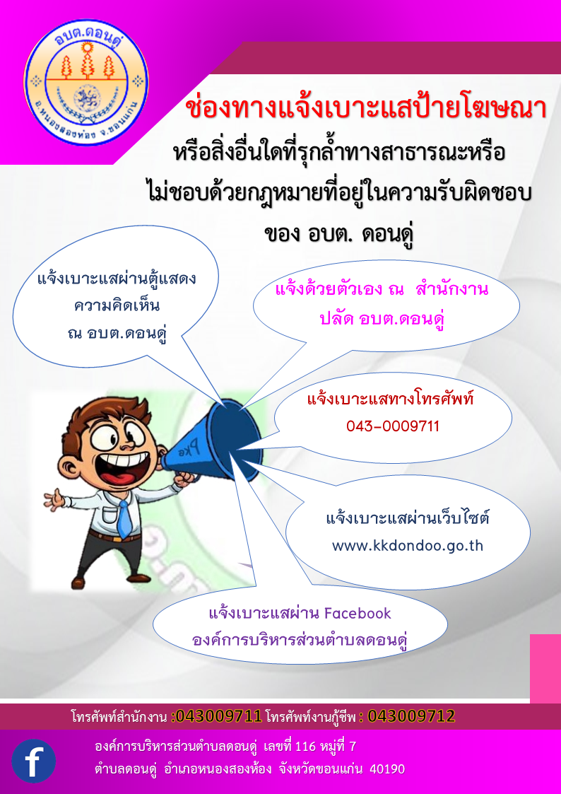 องค์การบริหารส่วนตำบลดอนดู่ อำเภอหนองสองห้อง จังหวัดขอนแก่น : www.kkdondoo.go.th