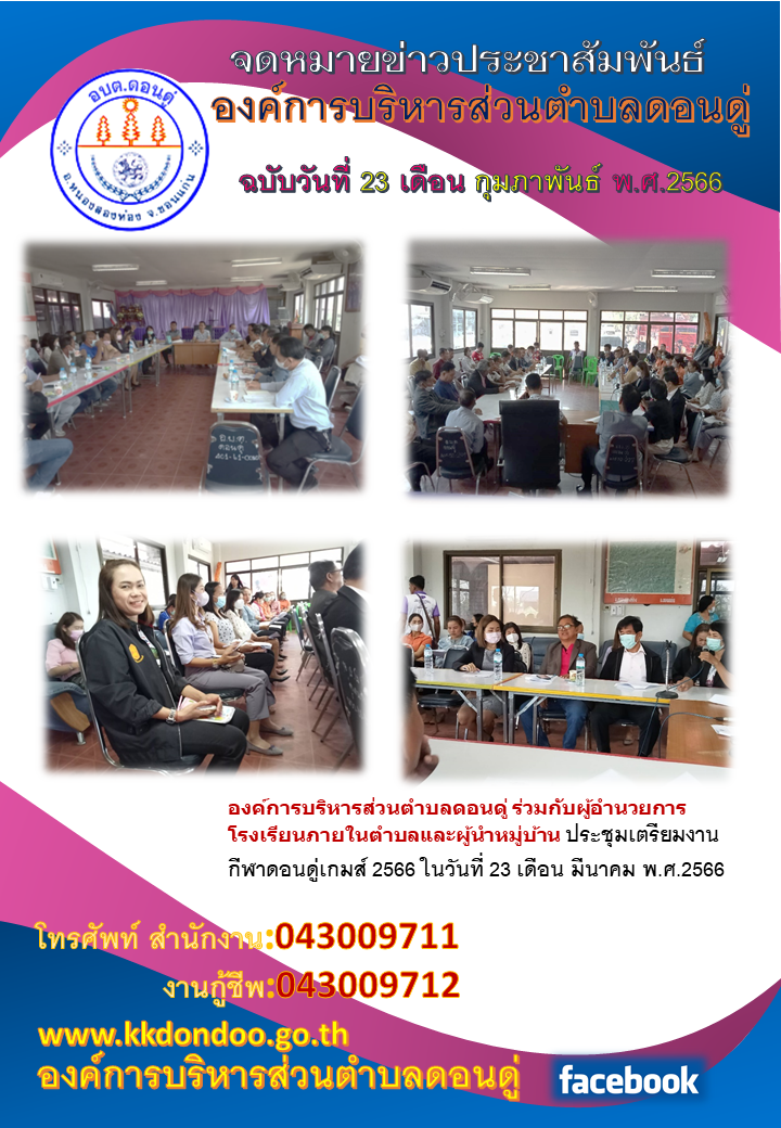 ประชุมเตรียมงานกีฬาดอนดู่เกมส์ ประจำปี 2566 ในวันท...[วันที่ 2023-02-23][ผู้อ่าน 82]