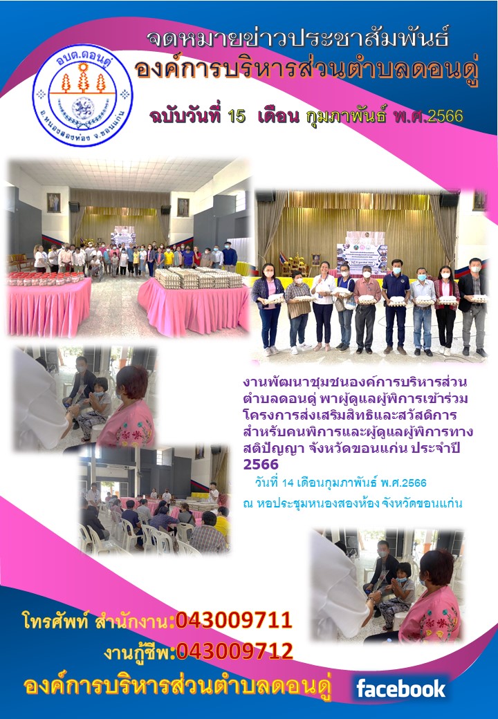งานพัฒนาชุมชนองค์การบริหารส่วนตำบลดอนดู่ พาผู้ดูแล...[วันที่ 2023-02-15][ผู้อ่าน 125]