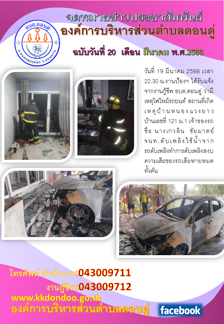 งานป้องกันฯ นำรถดับเพลิงออกระงับเหตุไฟไหม้รถยนต์ บ...[วันที่ 2023-03-20][ผู้อ่าน 144]