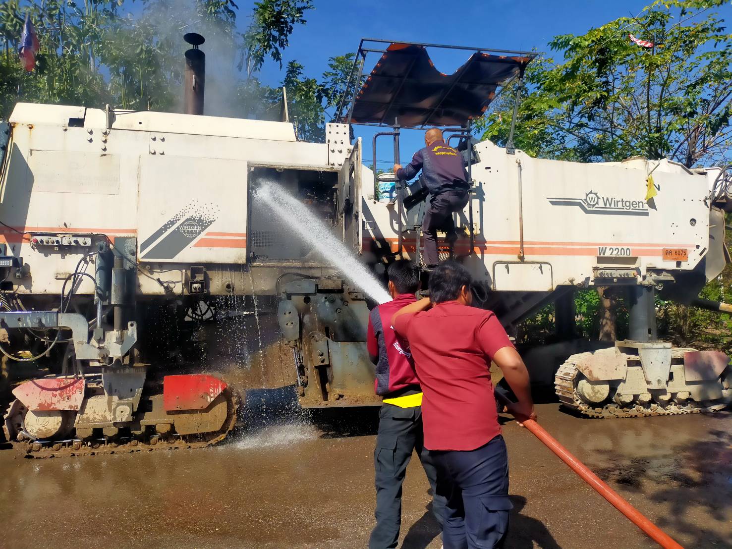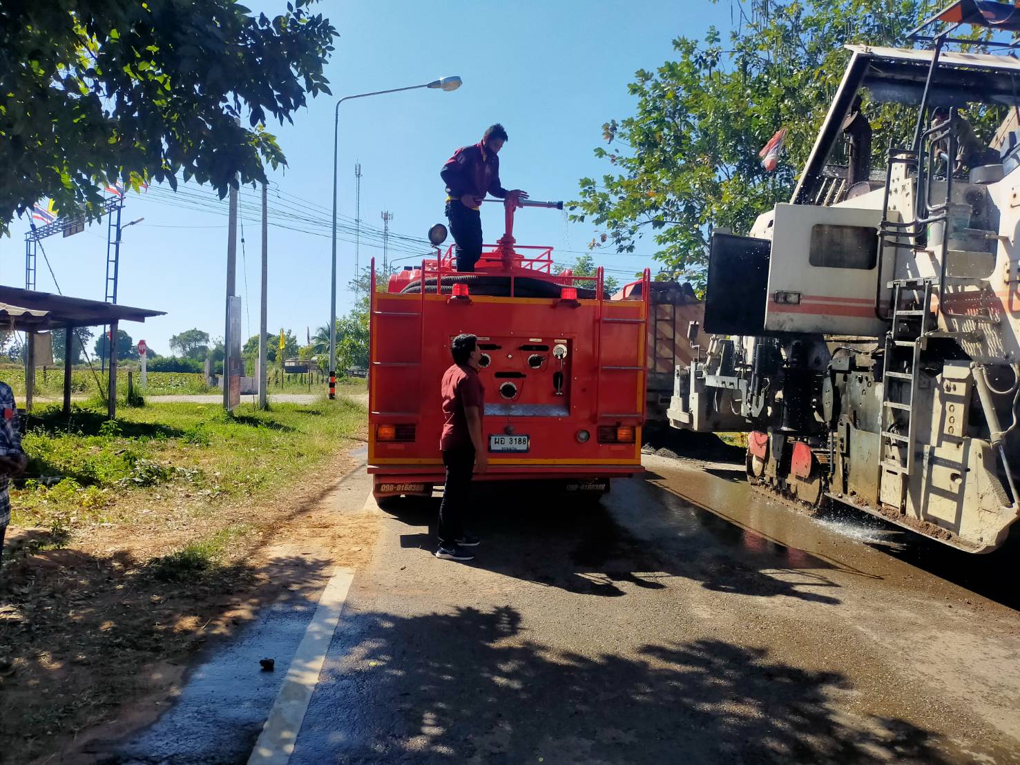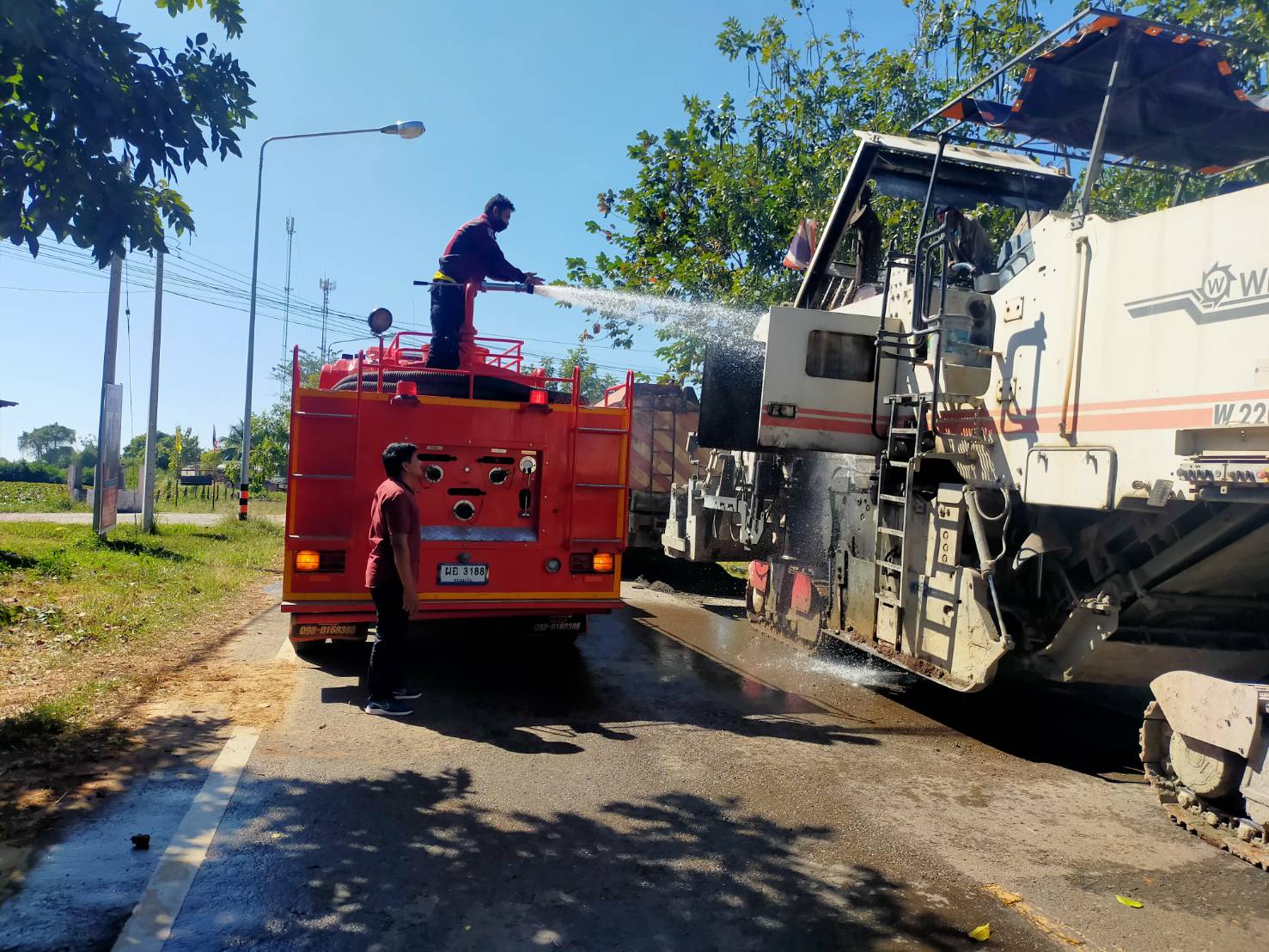 งานป้องกันฯ ระงับเหตุไฟไหม้รถกัดถนน