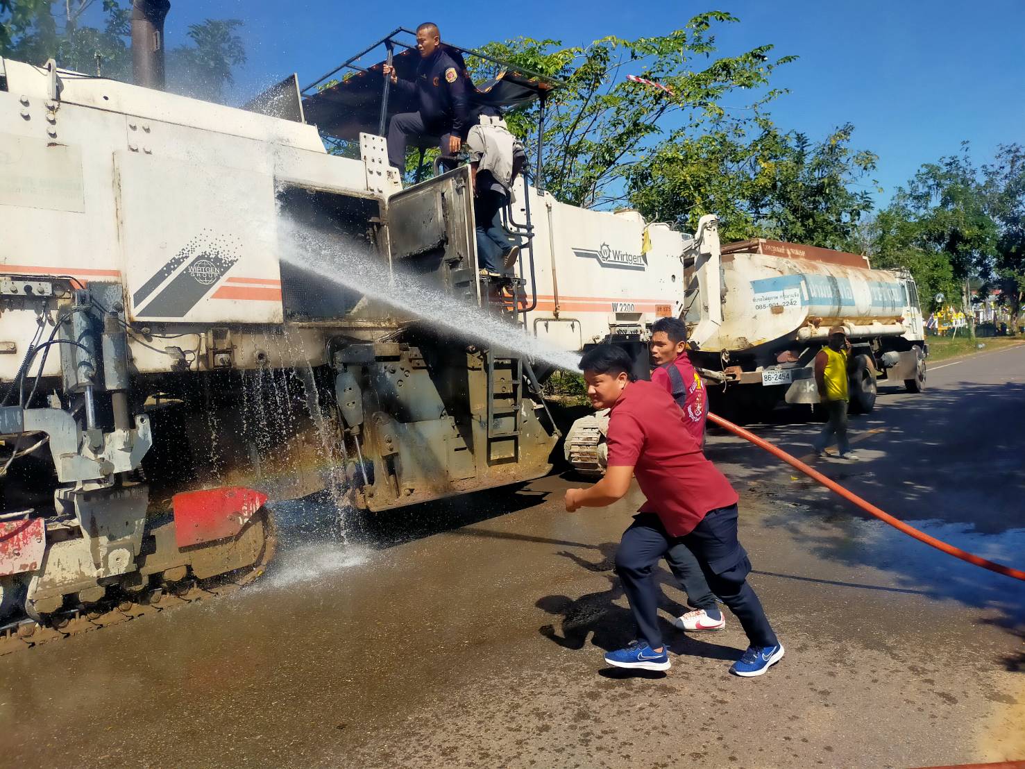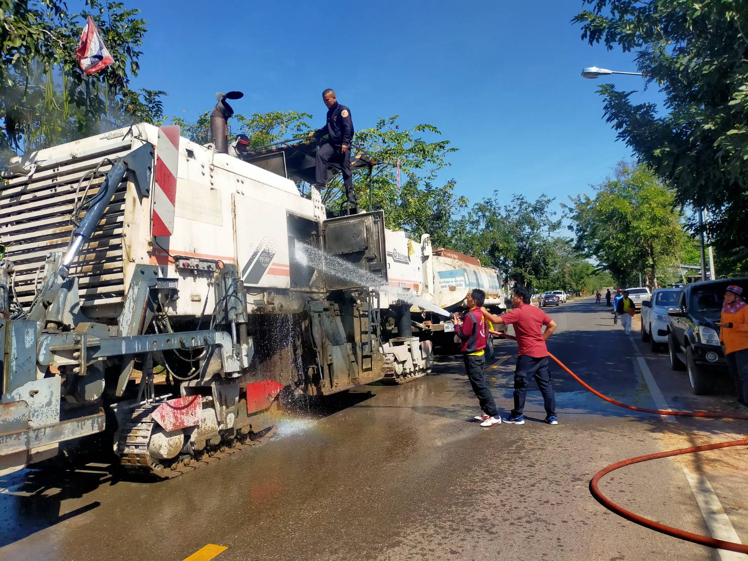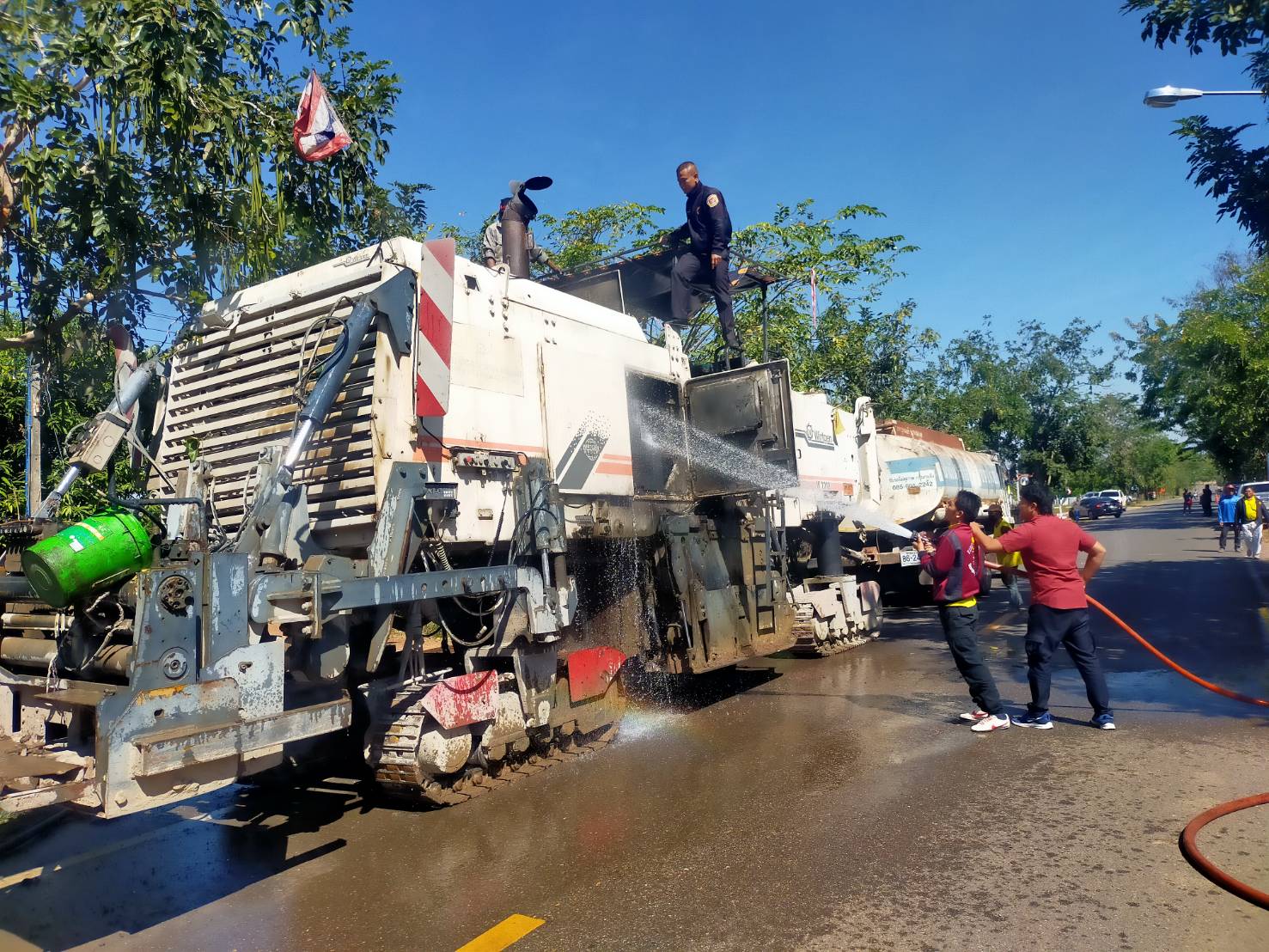 งานป้องกันฯ ระงับเหตุไฟไหม้รถกัดถนน
