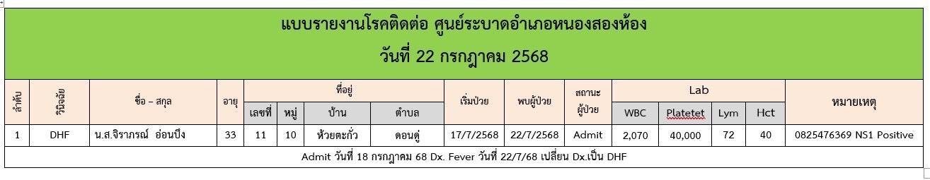 วันพุธที่ 23 กรกฎาคม 2568 งานอนามัยและสิ่งแวดล้อมได้ทำการควบคุมโรคไข้เลือดออกโดยการพ่นยุง ณ บ้านห้วยตะกั่ว ม.10