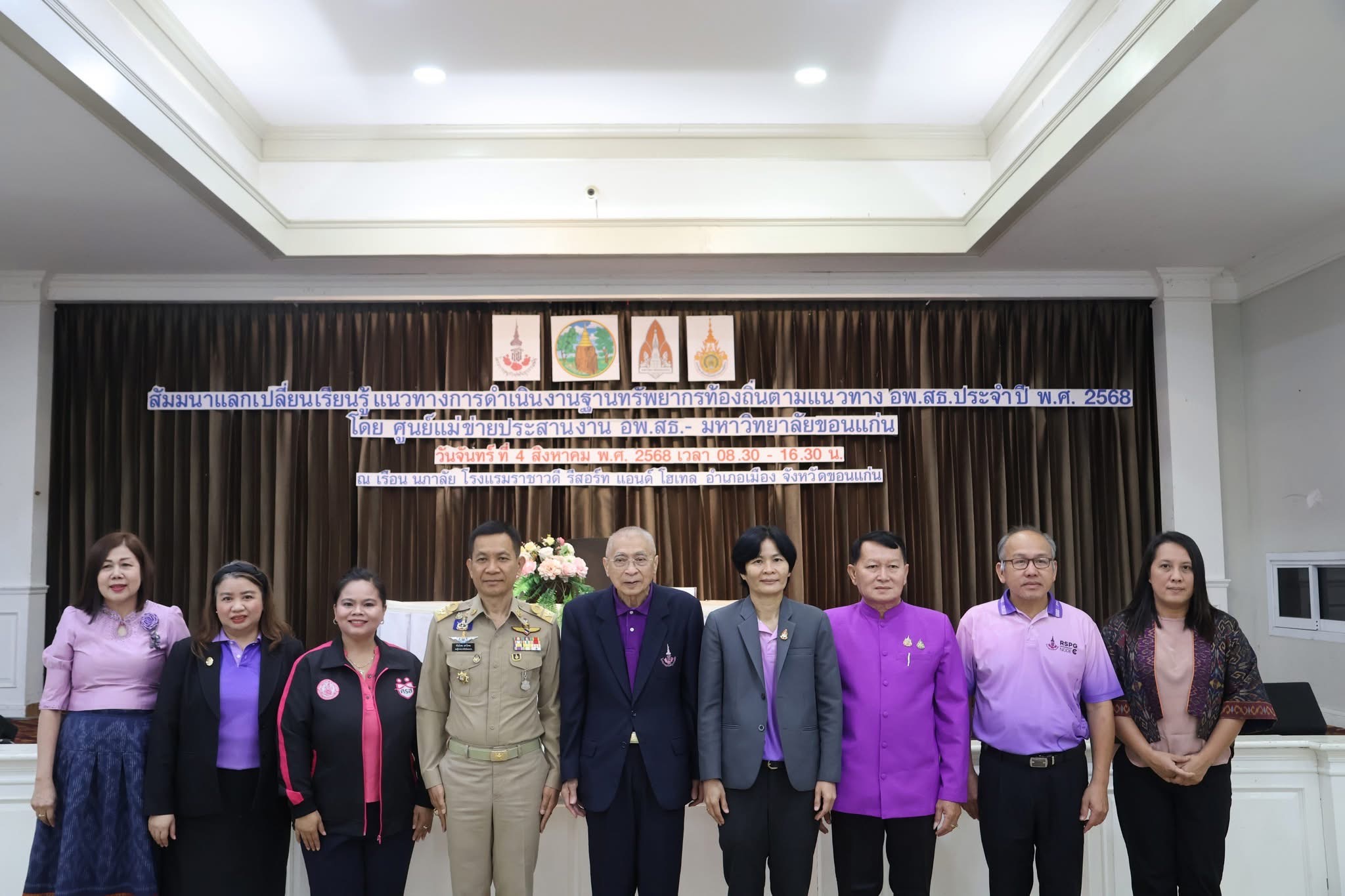 กิจกรรมสัมมนาแลกเปลี่ยนเรียนรู้แนวทางการดำเนินงานฐานทรัพยากรท้องถิ่นตามแนวทาง อพ.สธ ประจำปี พ.ศ.2568 โดยศูนย์แม่ข่ายประสานงาน อพ.ศธ - มหาวิทยาลัยขอนแก่น วันจันทร์ที่ 4 สิงหาคม 2568 ณ เรือนนภาลัย โรงแรมราชาวดี รีสอร์ท โฮเทล อำเภอเมือง จังหวัดขอนแก่น