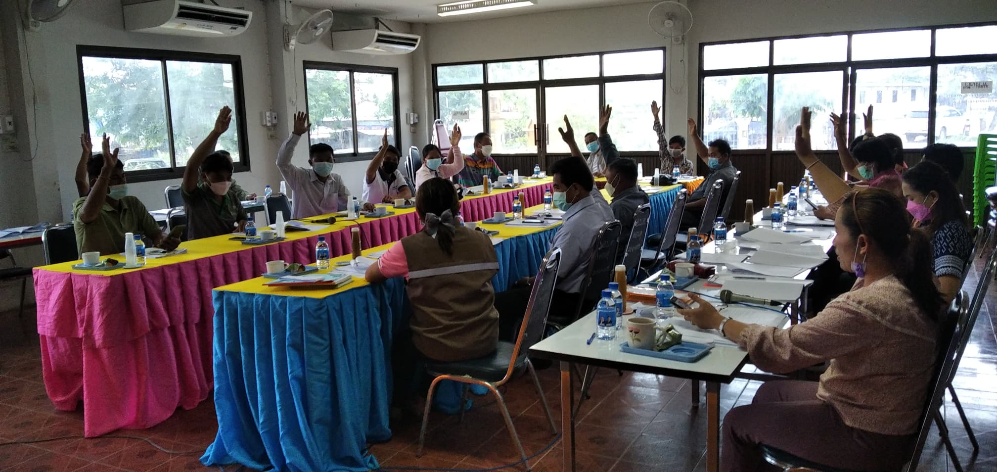 เจ้าหน้าที่องค์การบริหารส่วนตำบลดอนดู่ และผู้ใหญ่บ้าน ร่วม ประชุมจัดทำข้อบัญญัติองค์การบริหารส่วนตำบลดอนดู่