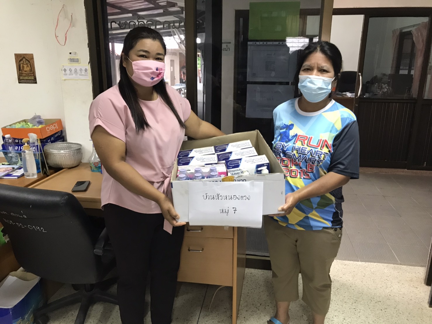 แจกอุปกรณ์ป้องกันโรคติดเชื้อไวรัสโคโรน่า -19  ให้ รพสต.ดอนดู่ และประธาน อสม.ทั้ง 12 หมู่บ้าน