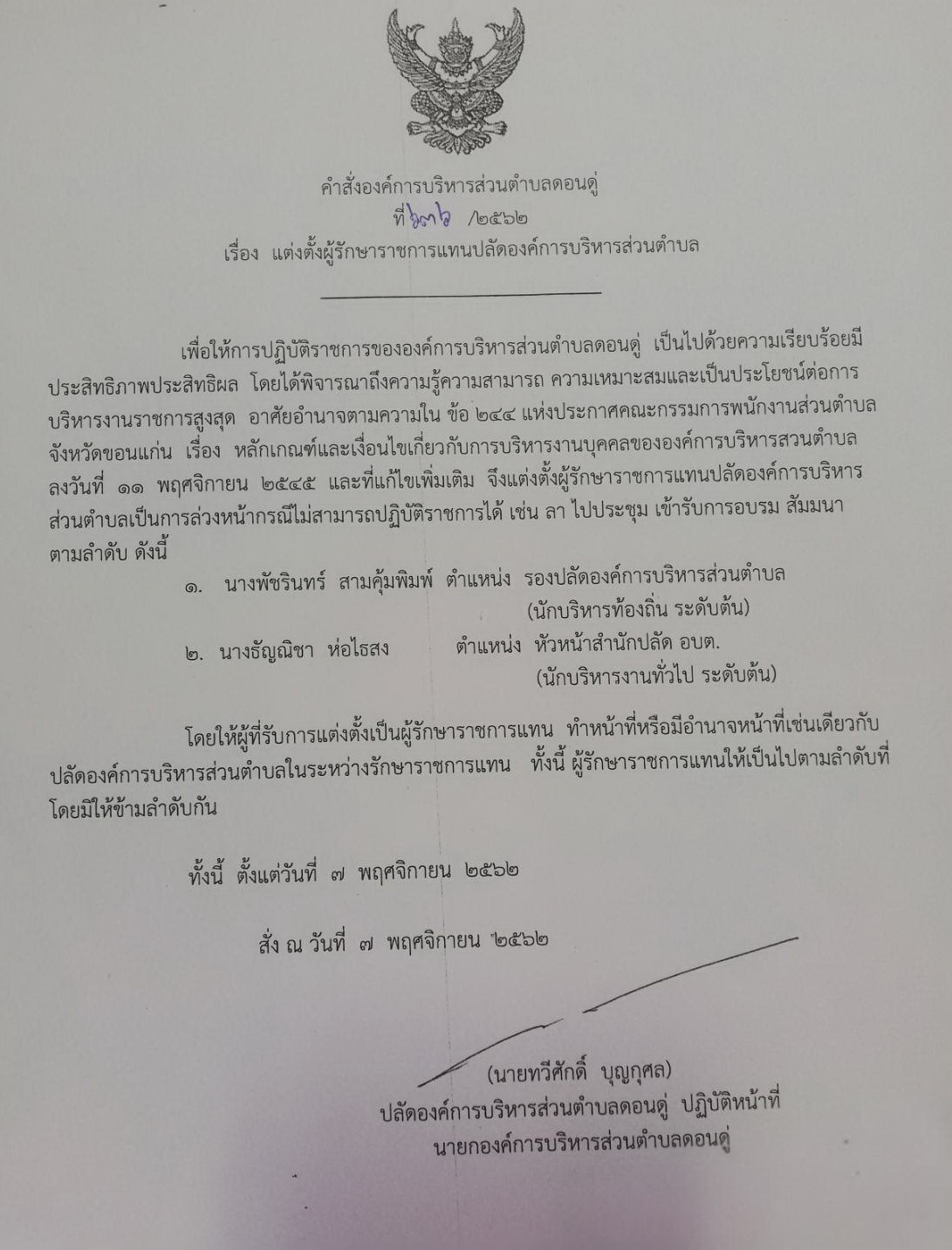 ผู้รักษาราชการแทนปลัดองค์การบริหารส่วนตำบล